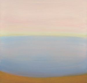 In 2022/2023 werkte ik aan een serie werken waarin ik de horizon weergaf als een curve. In mijn zwerftochten langs zee viel me op dat als je de blik niet fixeert op een kleine uitsnede van de horizon maar de blik laat dwalen, dat je de horizon dan als licht afgerond ervaart of ziet. Ik ben er mee gaan experimenteren en onderzoeken wat dat voor effect heeft op het totaal van het beeld. Het werk komt daardoor inhoudelijker dichter bij de frottages die ik tegelijkertijd maak. Daarin speelt de cirkel de hoofdrol en de horizon als deel van de cirkel klopt beter in die vormentaal. De serie concentreerd zich rond de thema’s: het gesprek tussen vorm en leegte, samenhang in kleur en cyclische beweging.